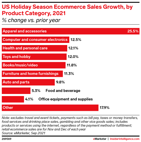 Holiday sales in the UK this year will grow by 8.1% from last year, with ecommerce sales growth rates stabilizing after spiking in 2020.