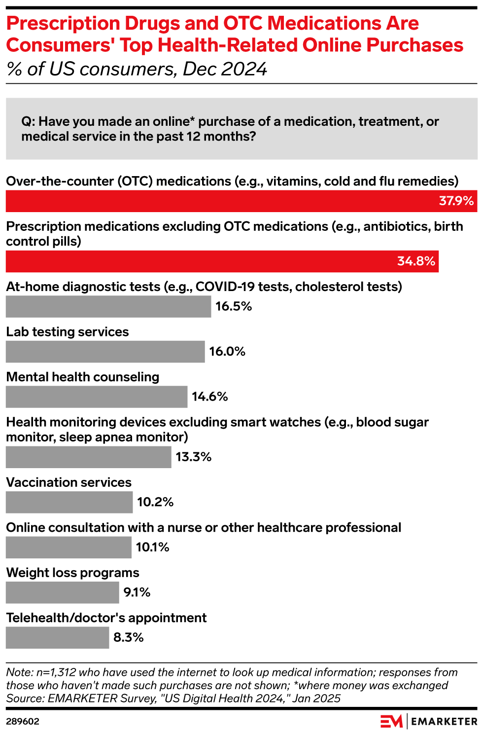 The news: GoodRx is rolling out a subscription service for erectile dysfunction (ED) treatment. Our take: GoodRx is in a great position to compete with the top D2C telehealth players since consumers are already on the site or app searching for prescription drug discounts—it has over 6 million active monthly consumers who use a coupon code. GoodRx might also be more trusted than pure-play telehealth companies in the eyes of consumers since its services help people save money on their healthcare.