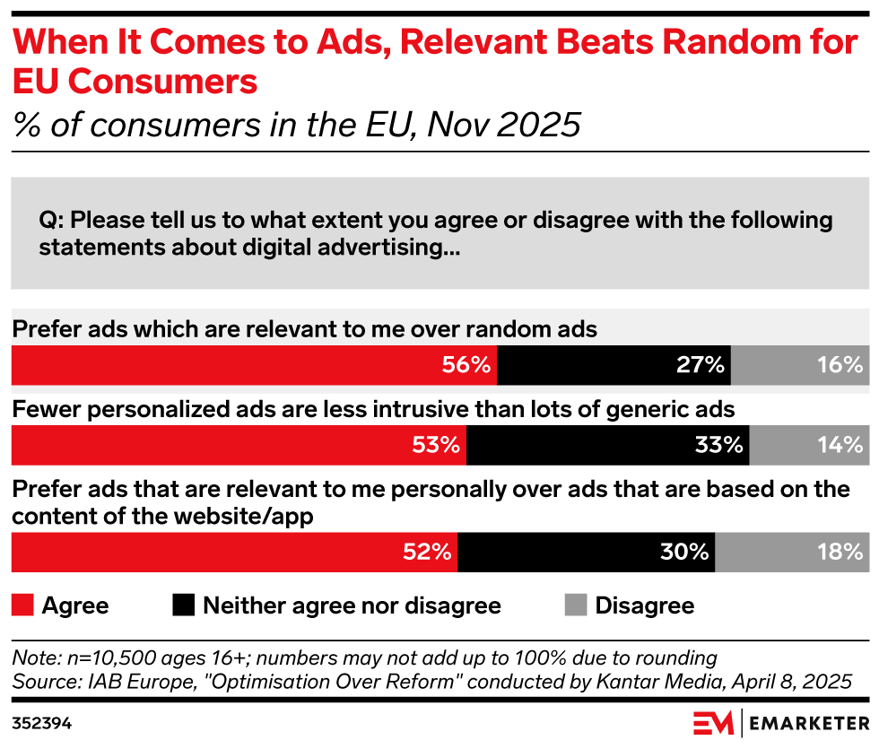 Consumers prefer fewer personalized ads over more generic ads: An IAB Europe report found that personalization works—but transparency is key.