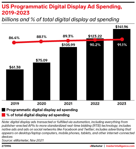 Despite uncertainty stemming from ongoing challenges in identity resolution, programmatic display ad spending is steadily taking on an ever-greater share of total US digital display ad spending.