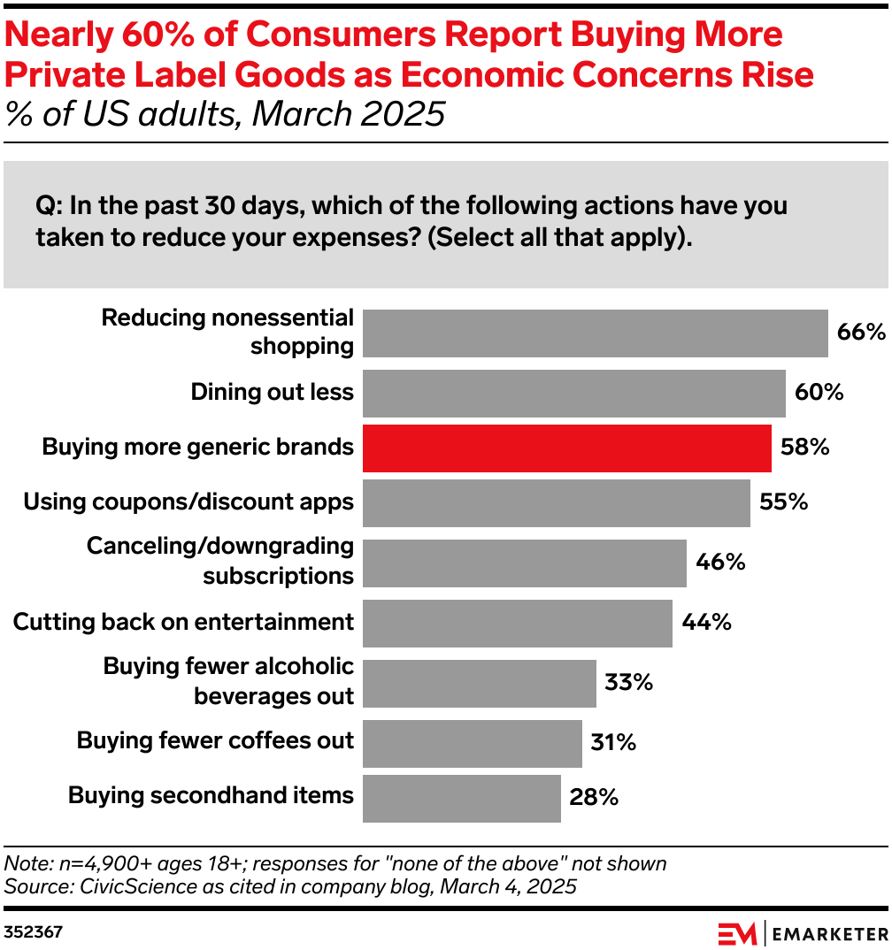 Store brands grew 3.7% while national brands lagged at 1.1%, widening the value gap for inflation-hit shoppers.