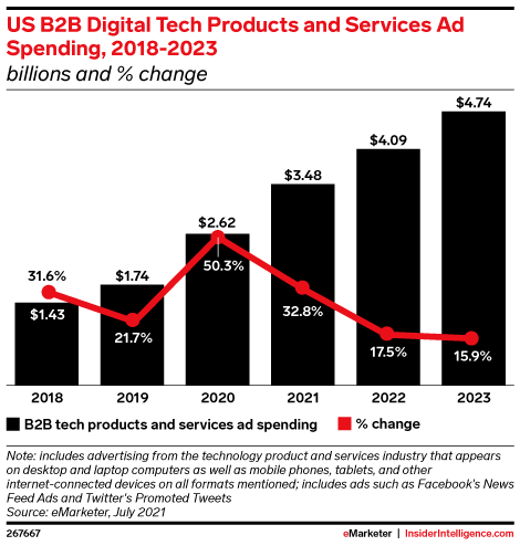 B2B tech products and services, the largest sector of B2B advertising, saw a massive boost in the US as the pandemic increased demand across the tech industry.