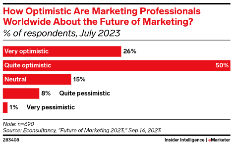 Marketers embrace AI with a 7/10 optimism rating: AI's role expands in content creation and strategic marketing growth.