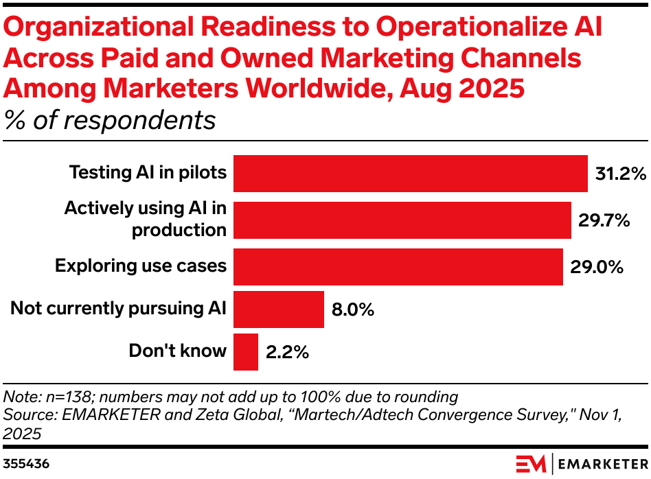 Advertisers use AI across creative and targeting, yet 61% report no meaningful gains and only 30% trust it.
