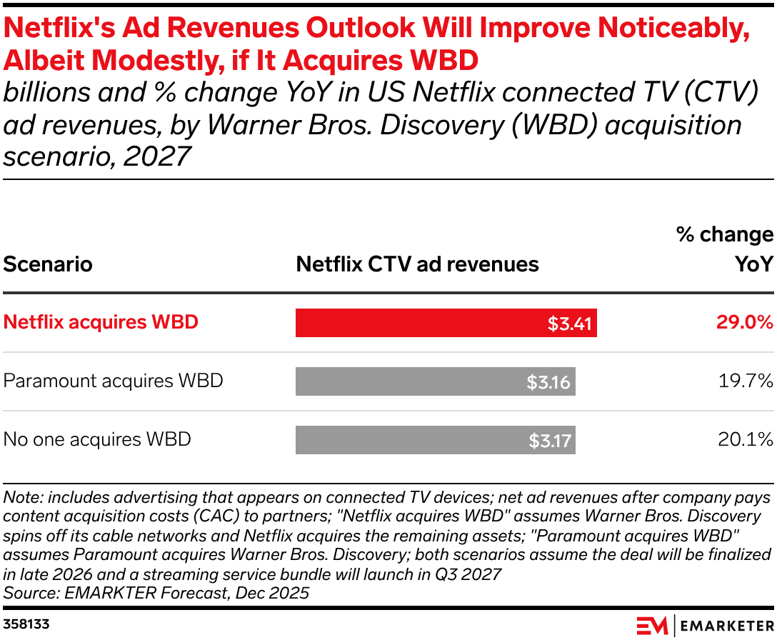 Netflix’s all-cash WBD bid means a faster deal that would ease streaming uncertainty and help advertisers plan around Netflix’s ad tier.