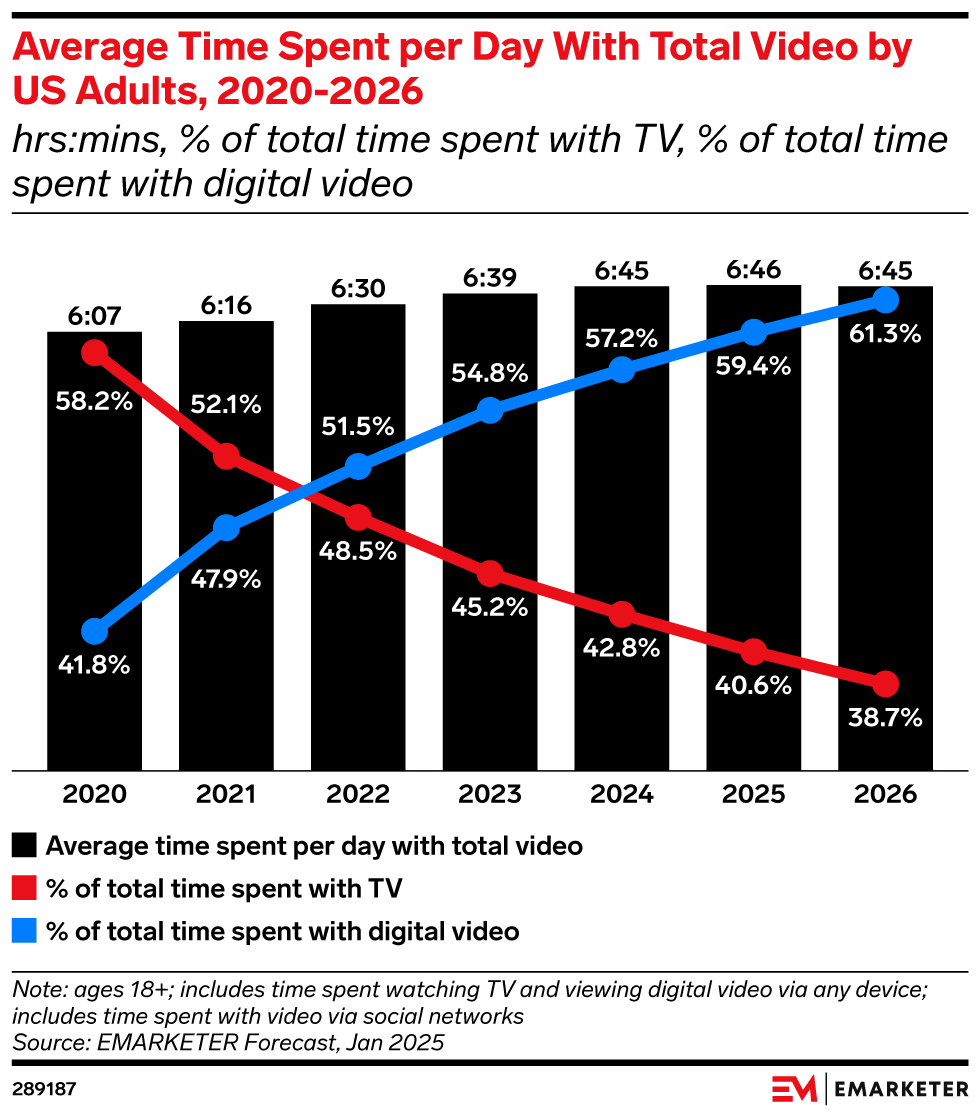 In 2024, traditional TV accounted for less than half of US total video subscription revenues for the first time. Its share of video subscription revenues will slip to about one-third by the end of our forecast in 2028.