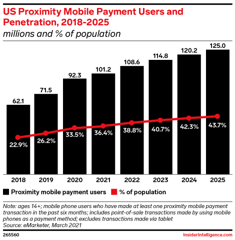 Mobile payments have proven their value during the pandemic as a way to limit our risk to exposure instead of paying with cash or card. Last year, per our estimates, smartphone usage in the US surged to an average of 182 minutes daily (from 154 minutes pre-pandemic), which extended to payments.