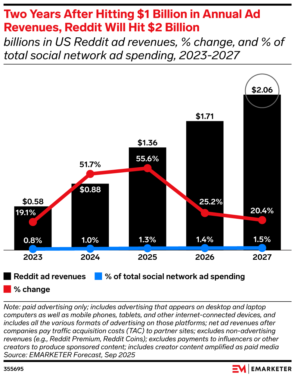 Reddit ad spend is growing 46.3% YoY, more than double Instagram's growth rate and five times TikTok's, according to a November report from Sensor Tower.