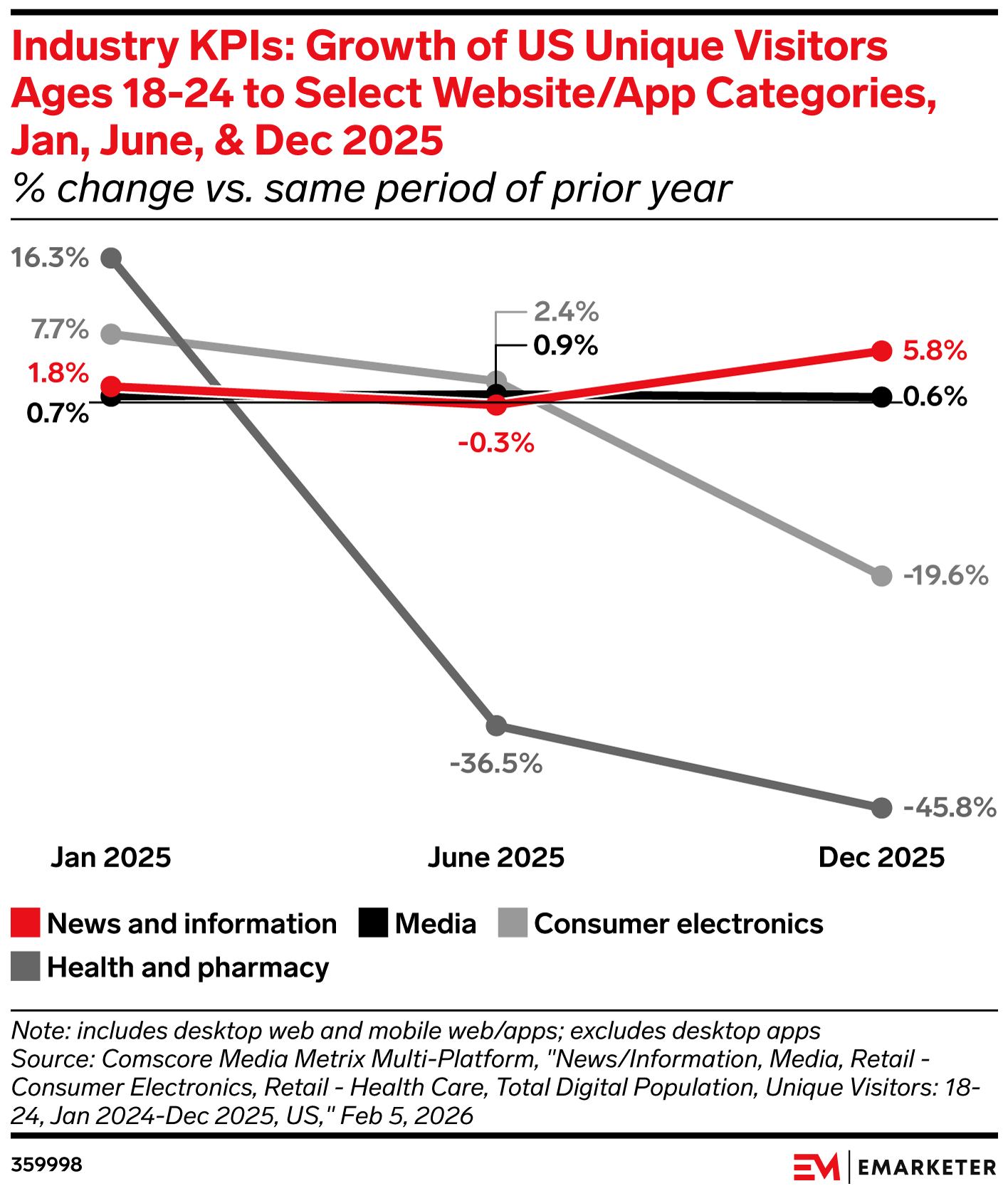 Young adults are flocking to news and media websites as electronics and health content tumble.