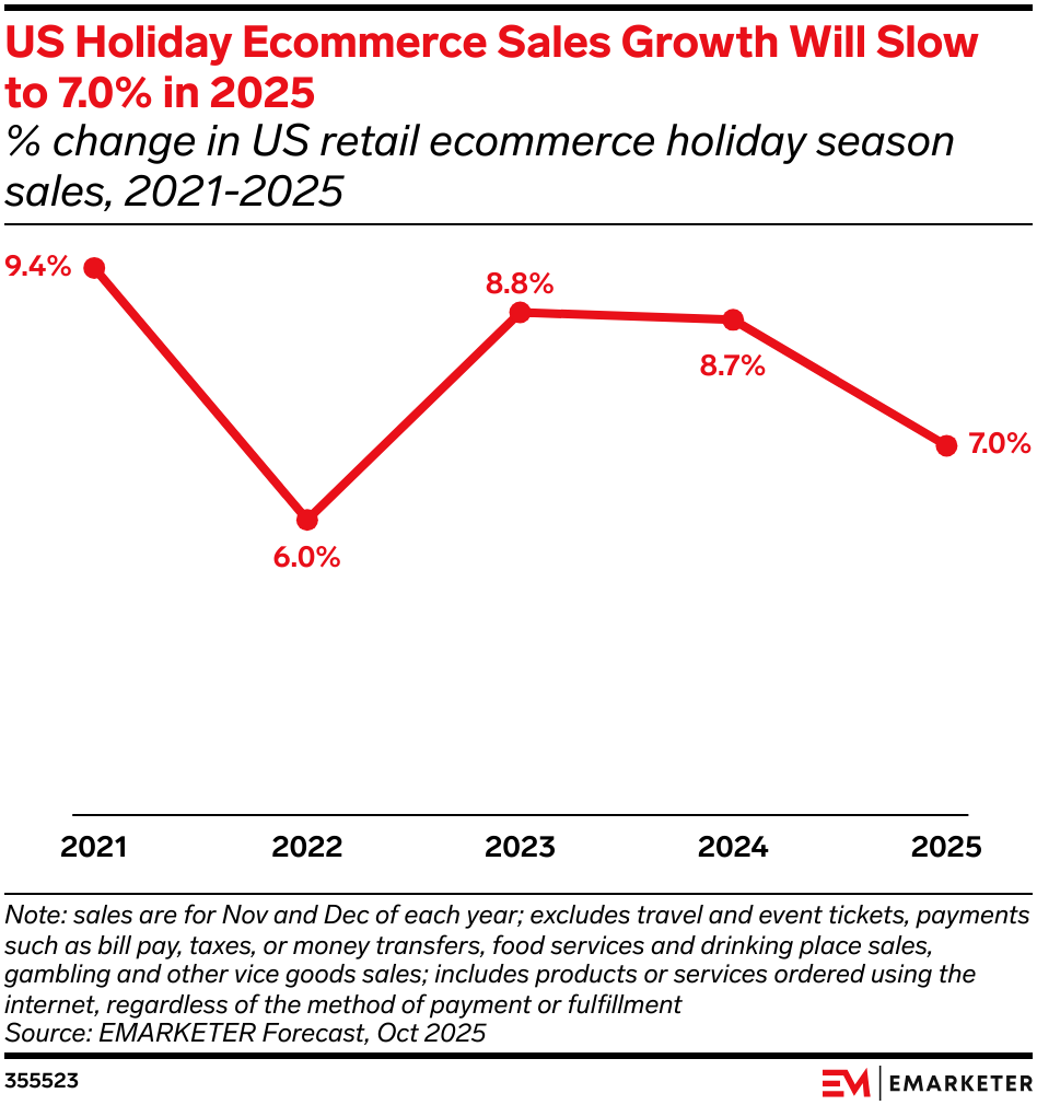 US online sales jumped 8.2% year over year to $88.7 billion in October, with $9.1 billion spent during Amazon’s Prime Big Deal Days and rival promotions, according to Adobe Analytics. The surge highlights ecommerce’s growing clout, driven by social and influencer-led shopping. Despite resilient consumer spending, rising reliance on Buy Now, Pay Later and record credit card debt hint at mounting financial strain. With forecasts pointing to slower but still solid holiday growth, the season is set to reflect a polarized economy—strong at the top, stretched at the bottom, yet collectively keeping ecommerce momentum alive.