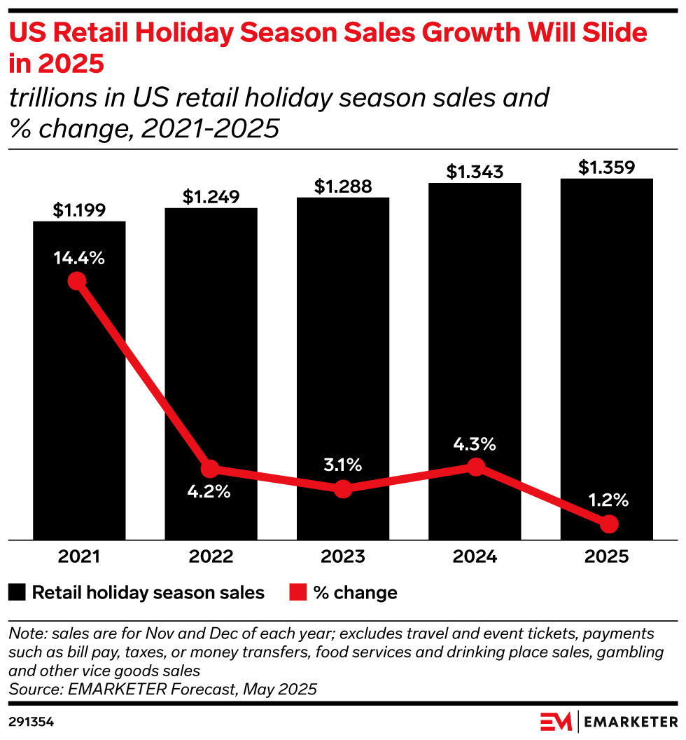 Holiday sales forecasts for 2025 show wide disparities, with Deloitte projecting slower growth at 2.9%–3.4%, Bain at 4%, and PwC warning of a 5% drop in average spending. Ecommerce is expected to grow, but at a more modest pace than recent years. A cooling labor market, persistent inflation, and weak consumer sentiment weigh heavily on outlooks, especially for lower- and middle-income households, whose spending power lags behind wealthier groups benefiting from wage growth and asset gains. Our view aligns with PwC’s caution, stressing that retailers should prioritize value-driven promotions, loyalty incentives, and strategic October campaigns to navigate an uneven season.