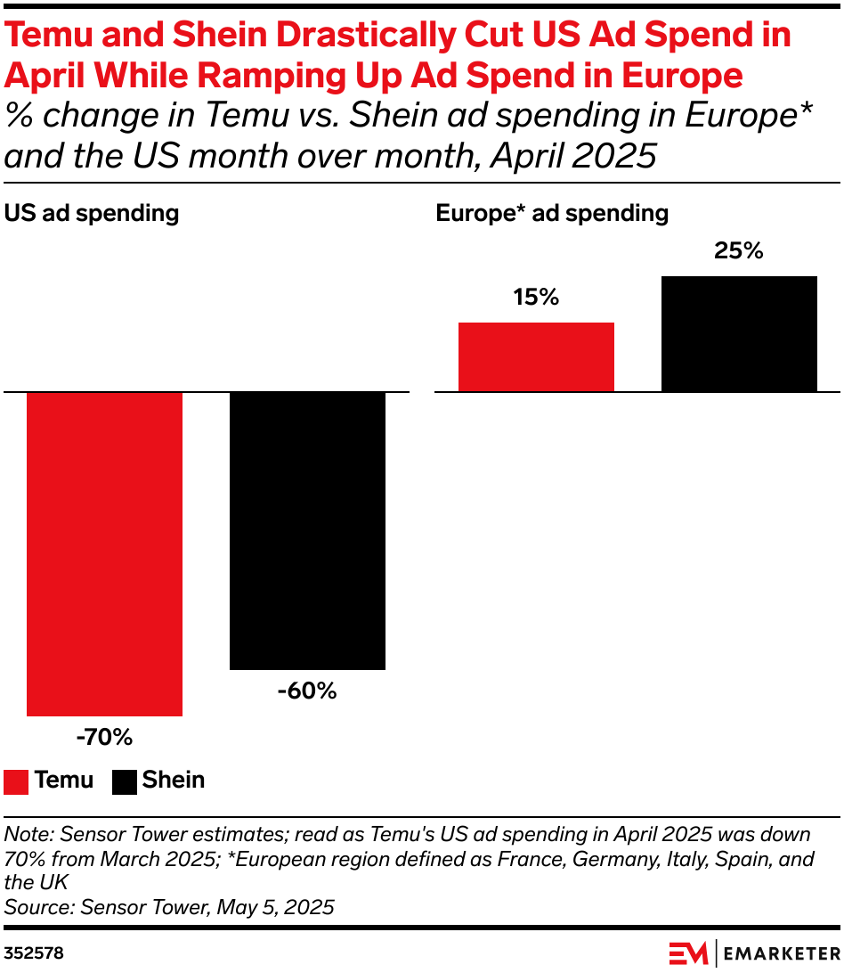 The trend: In the wake of the US closing the de minimis loophole, several large Chinese ecommerce and logistics firms have been investing in European warehouses to offset US losses, per Bloomberg. Our take: The days of rapid growth for Chinese ecommerce companies may be over. Europe might soften the blow from US losses, but it is unlikely to replace them—especially given the weak economic outlooks in France and Germany.