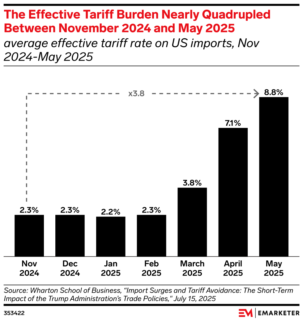 The news: President Donald Trump expanded his steel and aluminum tariffs to cover 407 consumer goods that either contain, or are packaged in, aluminum or steel. The scope is wide-ranging, hitting everything from baby booster seats to microwave ovens to personal care products that come in metal containers or packaging.The news: President Donald Trump expanded his steel and aluminum tariffs to cover 407 consumer goods that either contain, or are packaged in, aluminum or steel. The scope is wide-ranging, hitting everything from baby booster seats to microwave ovens to personal care products that come in metal containers or packaging. The takeaway: The sweeping scope and sudden rollout underscore that tariff uncertainty isn’t going away—and could easily intensify. With US consumers now facing the highest average effective tariff rate since 1933, the ripple effects are clear: Higher costs will flow downstream, squeezing retailers and dampening consumer spending.