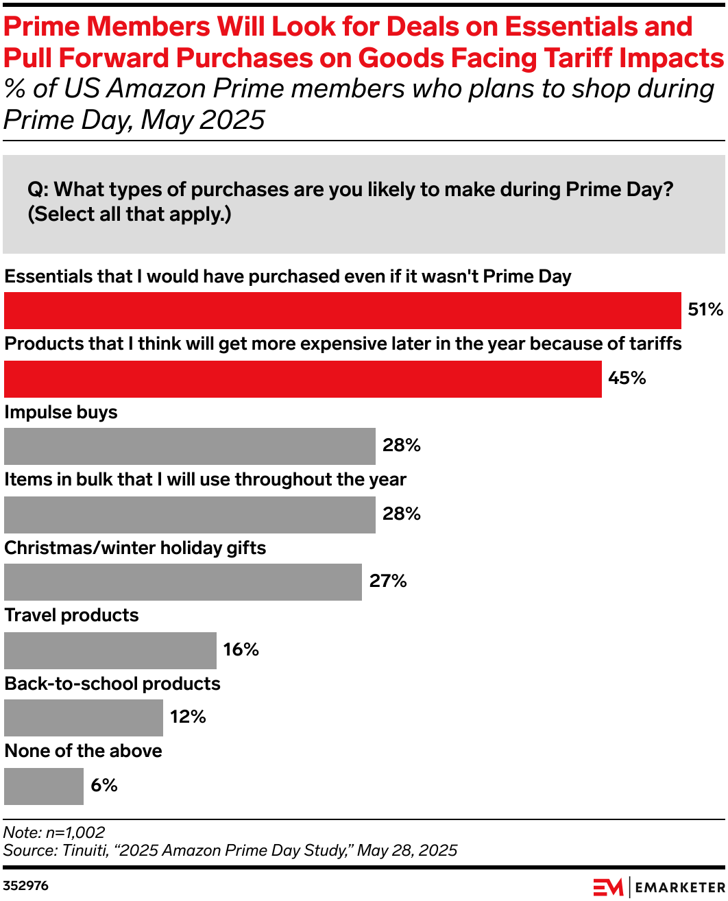 The results: Amazon’s first four-day Prime Day event helped push US ecommerce sales to $24.1 billion from July 8–11—a 30.3% YoY increase, according to Adobe Digital Insights. Our take: Prime Day has cemented its place as a mid-summer shopping tentpole—and not just for Amazon. Other retailers, ranging from Dollar General to Walmart, leaned into the promotional window, turning July into a new retail battleground. Beyond sales, the event is a massive advertising opportunity. One of the under-the-radar reasons Amazon doubled the event’s length was to provide more ad inventory. Stretching Prime Day to four days gave brands more time to reach high-intent shoppers—and Amazon more room to expand its already-massive high-margin retail media business.