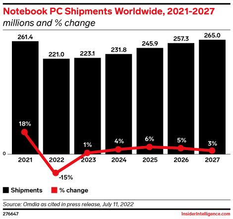 Apple’s MacBook mostly dodged holiday weakness a few quarters ago, but shipments fell 40.5% compared to the first three months of 2022. This trend could continue throughout the year.