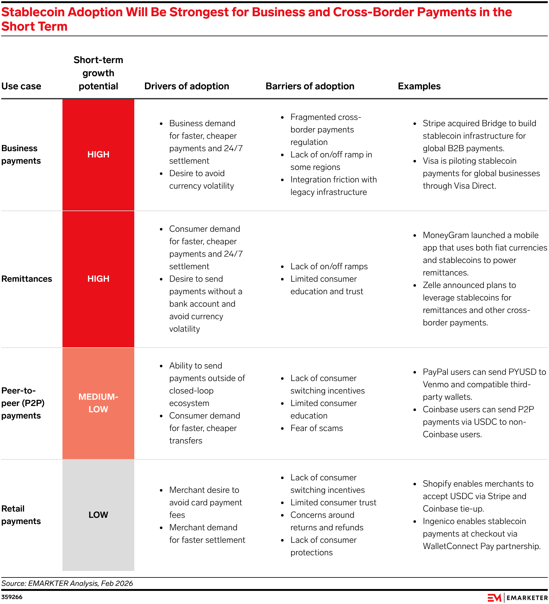 Stablecoins are moving from crypto rails to mainstream payments infrastructure. Regulatory support and institutional investment are accelerating adoption, but consumer trust gaps, fragmentation, and liquidity risks pose near-term hurdles for digital payments.