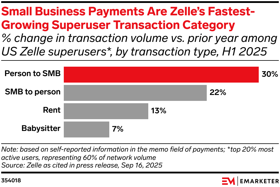 Early Warning Services’ Zelle disclosed double-digit year-over-year (YoY) growth across critical segments during the first half of 2025, per a press release. With P2P’s absence in Zelle’s volume increase list, the platform holds firm hold on essential payments, but seemingly has failed to disrupt established use patterns among users who still differentiate between smaller transactions—Venmoing a friend back for coffee—and large, major payments, such as Zelle-ing a landlord monthly rent.