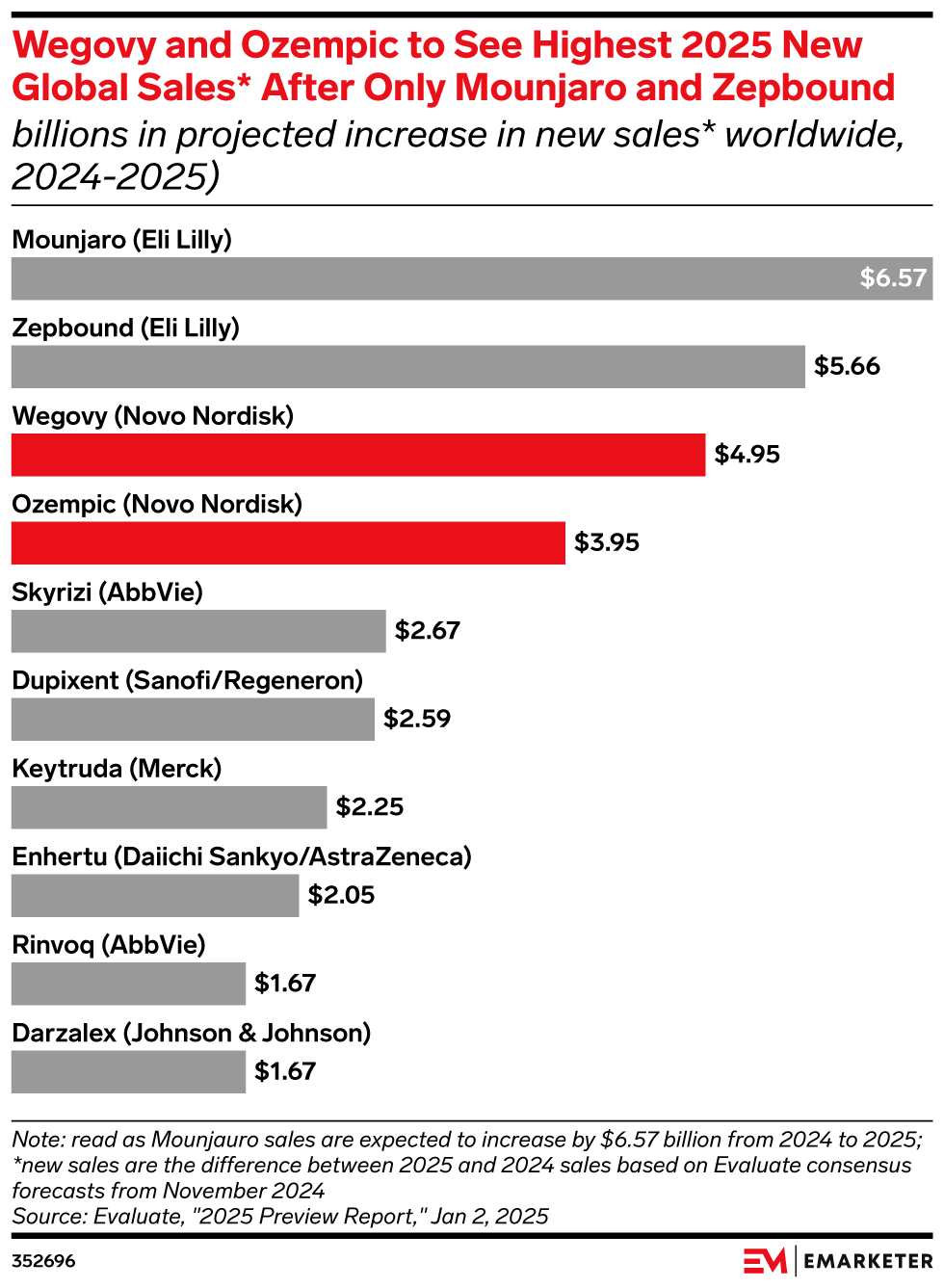 President Donald Trump remarked late last week that the cost of brand-name GLP-1 drugs could drop to $150 in the US. Trump didn’t detail which insurance markets the lower-cost GLP-1s would apply to, or how he plans to force Novo Nordisk and Eli Lilly to drop their prices. With prescriptions surging, GLP-1 drugmakers must prepare for tougher scrutiny and calls from the government, doctors, and patients alike to make treatments more affordable. Pharma marketers should intensify messaging around their weight loss drugs being cost-effective over the long haul by preventing more serious chronic diseases.