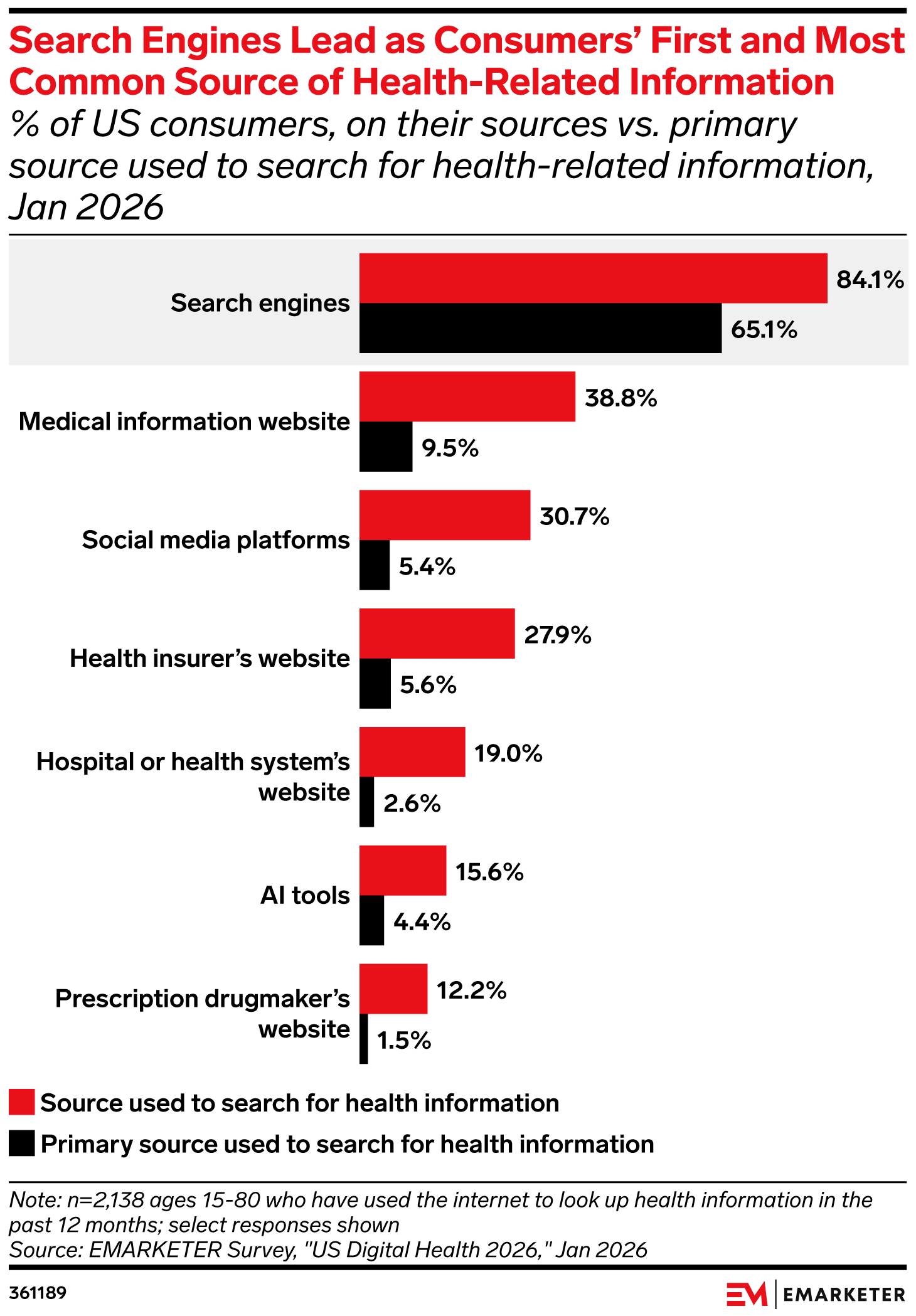 Consumers turn to search engines first for answers to health-related questions, even as social, video, and AI tools gain ground. Meanwhile, streaming TV is reshaping healthcare ad reach. Digital drives health-related action—but trust gaps shadow every channel.