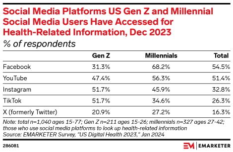 Millennials outpace Gen Z on eight of the 12 digital platforms EMARKETER tracks.